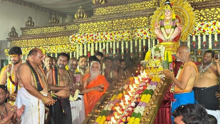 ఇంద్రధనుస్సు ప్రతినిధి: జిన్నారం మండలం మాదారం గ్రామంలోని కొలన్ అనంతరెడ్డి గార్డెన్స్ లో కొలన్ చంద్రపాల్ రెడ్డి గారి ఆధ్వర్యంలో నిర్వహించిన శ్రీ అయ్యప్ప స్వామి మహా పడిపూజ మహోత్సవంలో పటాన్ చెరు నియోజకవర్గ కాంగ్రెస్ పార్టీ ఇంఛార్జి కాట శ్రీనివాస్ గౌడ్ గారు పాల్గొని స్వామి వారిని దర్శించుకున్నారు.
