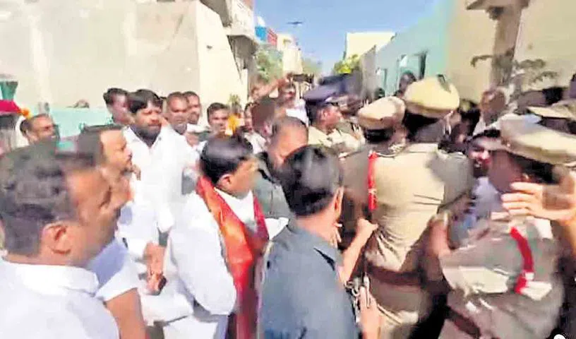 ఇంద్రధనుస్సు ప్రతినిధి: పటాన్ చెరు నియోజకవర్గం ఎమ్మెల్యే గూడెం మహిపాల్ రెడ్డి బొల్లారం మున్సిపాలిటీ పరిధిలో పలు అభివృద్ధి పనులకు శంఖు స్థాపనలు, ప్రారంభోత్సవాలు చేయటానికి నిన్న బొల్లారం పరిధిలో పర్యటనకు వెళ్లారు. అక్కడ సిసి రోడ్ ప్రారంభోత్సవం సమయంలో ఒక్కసారిగా కాంగ్రెస్ పార్టీ కార్యకర్తలు పట్టణ అధ్యక్షుడు జైపాల్ రెడ్డి ఆధ్వర్యంలో ముందుకు వచ్చి ఎమ్మెల్యే గారిని అడ్డుకున్నారు. శిలాఫలకంలో ప్రోటోకాల్ ప్రకారం పేర్లు రాలేదని, వారికి నచ్చిన బిఆర్ఎస్ నాయకుల పేర్లు వేశారని మీడియాతో చెప్పారు. మేము మంత్రి దామోదర రాజనరసింహ గారిచే సిసి రోడ్ ప్రారంభింప చేయాలనుకున్నాము. ఆ లోగానే మీరు వచ్చి ఎలా ప్రారంభిస్తారు? అని ఎమ్మెల్యే ను నిలదీశారు. కాంగ్రెస్ కార్యకర్తలు ‘గో బ్యాక్ ఎమ్మెల్యే’ అంటూ నినాదాలు చేశారు. ఇంతలో పోలీసులు రంగ ప్రవేశం చేసి ఇరువర్గాలను సముదాయించారు. ఈ సందర్బంగా ఎమ్మెల్యే కాంగ్రెస్ కార్యకర్తలను ఉద్దేశించి చేసిన వ్యాఖ్యలు సంచలనం కలిగించాయి.