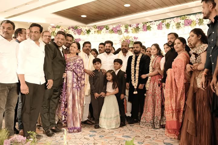 ఇంద్రధనుస్సు ప్రతినిధి: పటాన్ చెరు శాసన సభ్యులు గూడెం మహిపాల్ రెడ్డి సోదరుడు గూడెం మధుసూదన్ రెడ్డి కుమారుడు గూడెం సంతోష్ రెడ్డి వివాహ విందుకు రాష్ట్ర ముఖ్యమంత్రి ఎనుముల రేవంత్ రెడ్డి హాజరయ్యారు. సోమవారం పటాన్ చెరు పట్టణంలోని జిఎంఆర్ కన్వెన్షన్ సెంటర్లో ఏర్పాటు చేసిన విందు కార్యక్రమానికి సీఎం ముఖ్య అతిథిగా హాజరై వధూవరులను ఆశీర్వదించారు. ఈ కార్యక్రమంలో సీఎం సలహాదారు వేం నరేందర్ రెడ్డి, జిల్లా కలెక్టర్ వల్లూరి క్రాంతి, ఐజి సత్యనారాయణ, జిల్లా ఎస్పీ పారితోష్ పంకజ్, తదితరులు పాల్గొన్నారు.