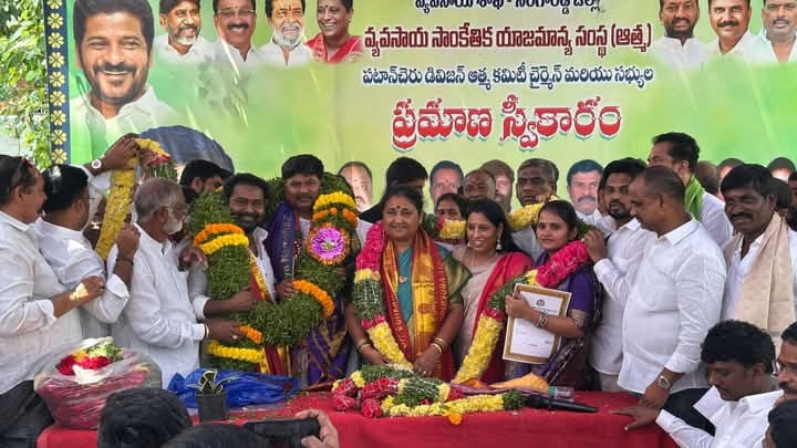 ఇంద్రధనుస్సు ప్రతినిధి: పటాన్చెరు డివిజన్ సాంకేతిక యాజమాన్య సంస్థ (ఆత్మ) కమిటీ నూతన చైర్మన్ మరియు సభ్యుల ప్రమాణ స్వీకార కార్యక్రమం ఘనంగా జరిగింది. ఈ కార్యక్రమానికి ముఖ్య అతిథులుగా TGIIC చైర్ పర్సన్ శ్రీమతి నిర్మల జగ్గారెడ్డి గారు, పటాన్చెరు నియోజకవర్గ కాంగ్రెస్ పార్టీ ఇంచార్జి కాట శ్రీనివాస్ గౌడ్ మరియు సంగారెడ్డి జిల్లా మహిళా కాంగ్రెస్ అధ్యక్షురాలు కాట సుధా గారు హాజరయ్యారు.